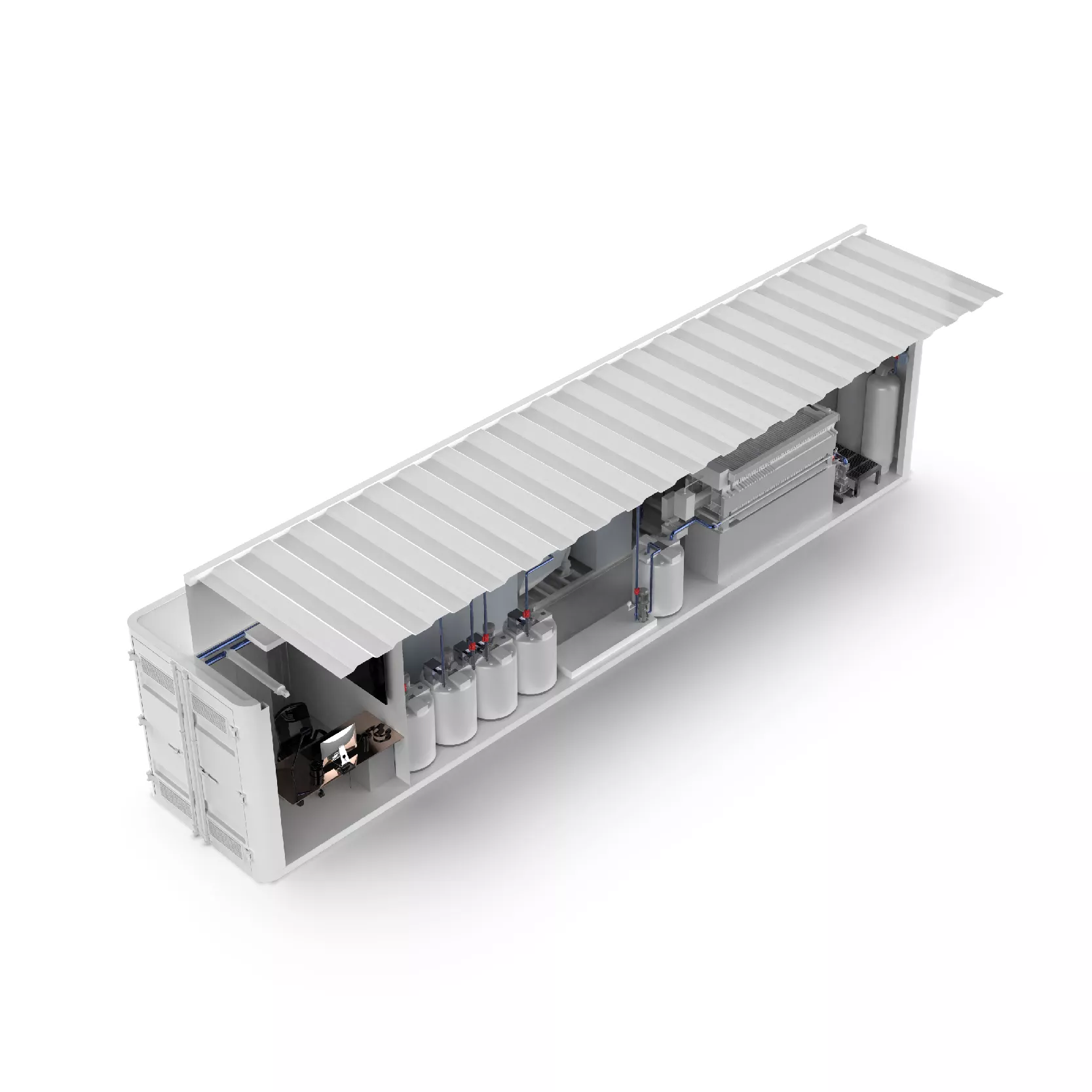 This containerized industrial wastewater treatment system is a fully integrated, mobile solution engineered for complex effluent streams. Housed within robust shipping containers, it features a multi-stage process tailored for industrial applications, including chemical-physical pretreatment for pollutant-specific removal, advanced biological treatment such as MBBR or MABR for high-load organic and nutrient degradation, followed by clarification and tertiary filtration or disinfection. Designed for rapid deployment and operational resilience, the system delivers consistent, compliant water quality suitable for discharge or reuse, offering a flexible and cost-effective treatment asset for remote sites, temporary projects, or as a modular expansion to existing facilities.